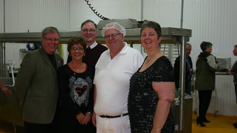 Windsor (RC) – C’est vendredi dernier que la Fromagerie L’Étoile ouvrait ses portes à une clientèle déjà conquise dès l’annonce du retour de l’entreprise familiale. L’achalandage tout au long de la fin de semaine était surprenant, à l’image du 5 à 7 du jeudi 26 avril que les propriétaires du commerce situé dans le secteur Greenlay, Louise Gagnon et Étienne L’Étoile, ont réservé à l’intention des membres de leurs familles, des amis, partenaires et invités. L’endroit était rempli à pleine capacité dans un contexte convivial et chaleureux. L’une des deux photos rassemble le directeur général du Centre d’aide aux entreprises Val-Saint-François, Bertrand Ménard ; la mairesse de Windsor, Sylvie Bureau ; le directeur général du Centre local de développement de la MRC du Val-Saint-François, Jocelyn Saint-Jean ; Étienne L’Étoile et Louise Gagnon.