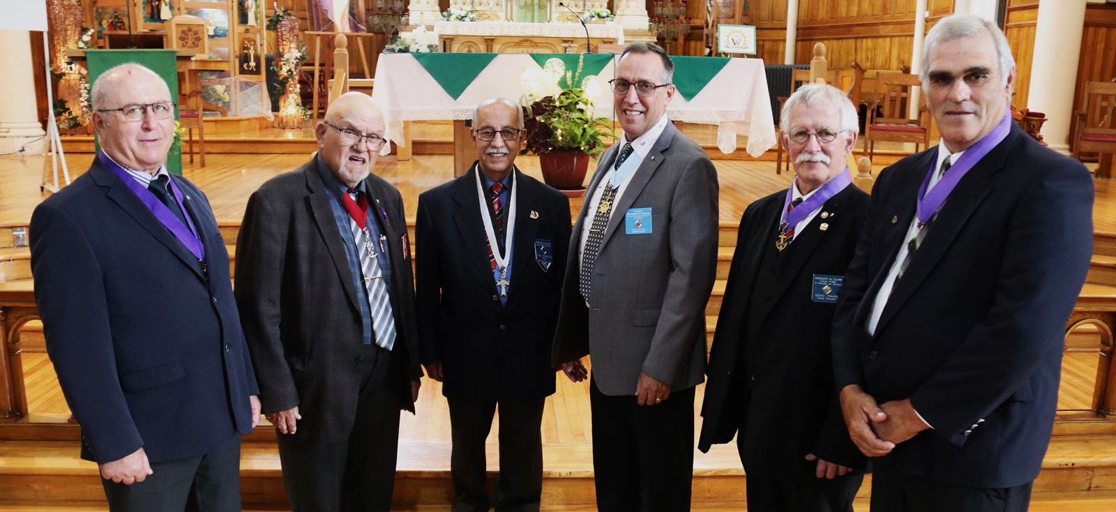 Renald Houle, Grand Chevalier conseil 9357 Wotton, Léo Morin, Député Grand Chevalier district 87, Aumônier Yves Bourassa, Diacre district 87, Directeur régional des Chevaliers de Colomb pour l’Estrie, Pierre Côté, Denis Pinard, Grand Chevalier du conseil 9894 de St-Georges-de-Windsor, et Claude Lacroix, Député Chevalier Conseil 3322 Danville.
