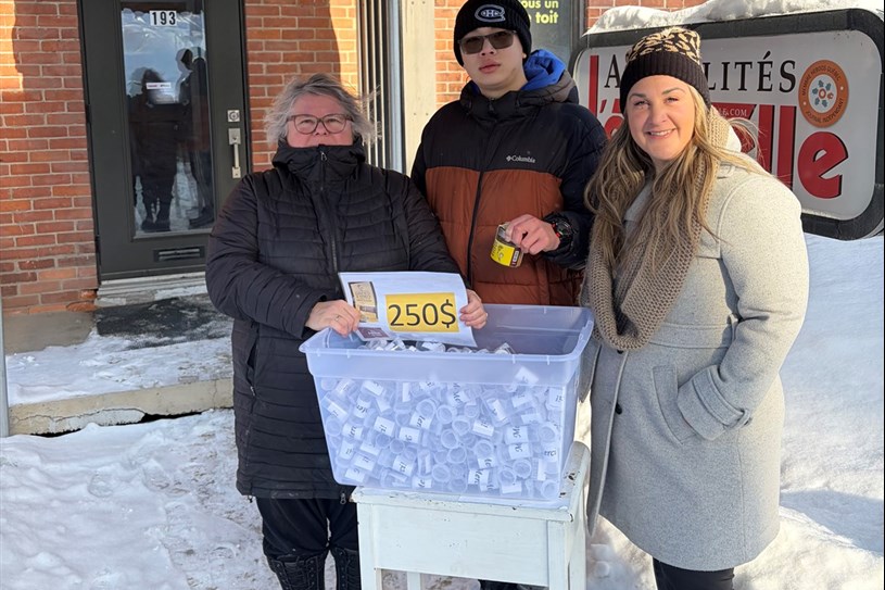 Windsor — Dans le cadre de la campagne de financement du Centre de répit Théo Vallières, Roxanne et Théo Vallières du centre avec Juli Lemay, directrice du journal Actualités — L’Étincelle ont procédé à un premier tirage le 5 février 2026