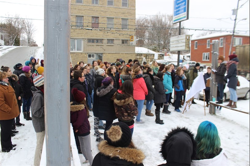 Windsor (RC) – Au cours des mois d’octobre et novembre, des élèves de deuxième et troisième secondaire de l’école du Tournesol, ainsi que quelques-uns de l’adaptation scolaire de l’établissement, on tous travaillé sur un projet de photographies ayant pour thème l’automne. Au terme de cette réalisation, c’est le jeudi 28 novembre, à 11h, que les élèves ont quitté le Tournesol afin de présenter leur vernissage de l’exposition, Vent d’automne, à la place Sarah-Ève-Fontaine situé en bordure de la rue St-Georges