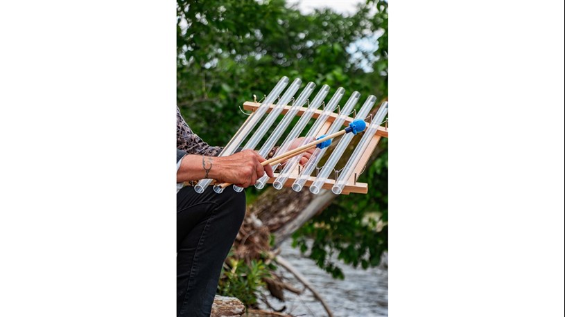 Le quartzophone est une harpe de cristal conçue et inventée par l’artiste québécois Gaudry Normand, fabriquée à la main avec des tubes de cristal de quartz pur.