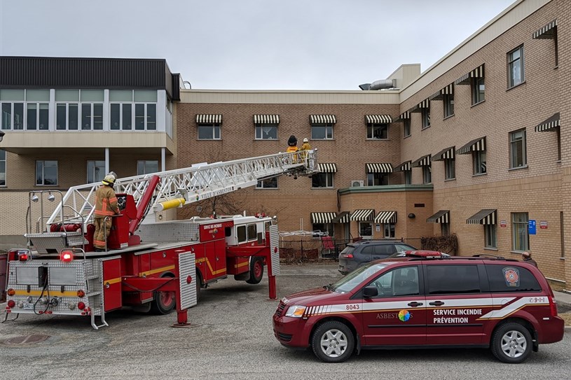 Asbestos (RL) - La Ville d’Asbestos a posé un très beau geste de solidarité et de réconfort à l’endroit des ainés de sa communauté ce vendredi 27 mars. En effet, cette action s’est traduite par une visite de quelques résidences pour personnes âgées sur son territoire, de la part de la mascotte « Yvon Larosé » ainsi que de membres de son service incendie local. C’est muni du camion de pompier avec la grande échelle que ces derniers se sont rendus saluer les bénéficiaires de ces résidences.
