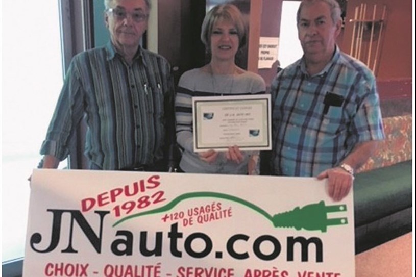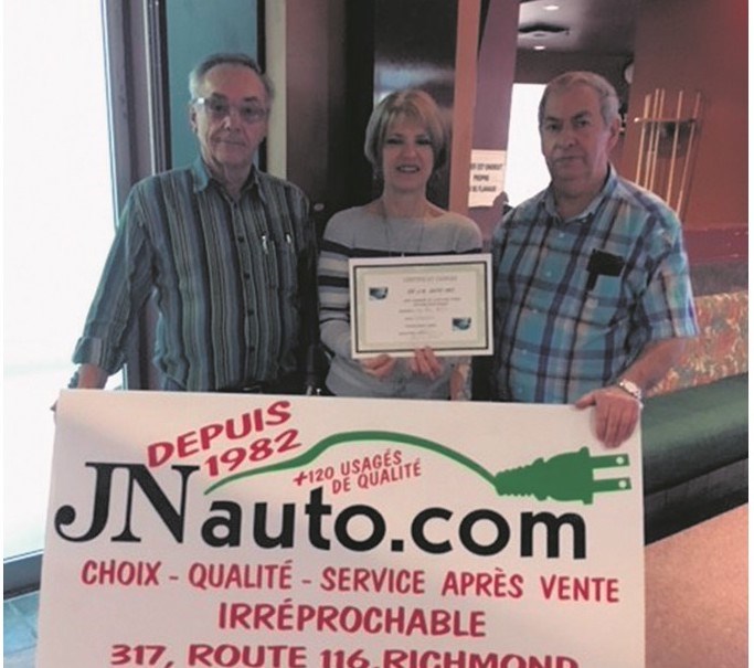 Richmond – Jean-Paul Petit est le gagnant du tournoi Abat9 qui se tenait le 10 mars au Quillorama. Il peut ainsi profiter durant une journée d’une auto électrique offerte par J.N. Auto. De gauche à droite : Jean-Marc Bruneau, organisateur du tournoi; Sylvie Gagné, propriétaire du Salon de quilles de Richmond et le gagnant Jean-Paul Petit.