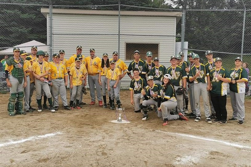 Val-des-Sources(RL) —Pour une deuxième année consécutive la formation de baseball mineur des A’s de Val-des-Sources, a remporté les grands honneurs de leur catégorie au niveau régional. C’est donc au terme d’une saison marquée par de l’apprentissage constant et un bel esprit d’équipe, que les joueurs et joueuses de la formation locale se sont rendu du côté de Lac-Mégantic les 28 et 29 août dernier, afin d’y disputer les séries de Baseball Québec. Il faut mentionner que la formation évaluait au sein du calibre ¨A¨ tout au long de la saison en raison du fait qu’il n’y avait qu’une seule équipe de ce niveau au sein de l’association de baseball mineur des Sources et par que conséquent ces derniers se retrouvaient d’emblée dans ce calibre de jeu. C’est donc un parcours sinueux et parfois difficile auquel les jeunes ont dû faire face au cours de la saison, avant de finalement voir la requête placer par la direction de pouvoir jouer les régionaux au niveau B, être acceptée. Une série de matchs, que l’on prévoyait forts enlevants attendaient donc les troupiers de l’entraineur Marc St-Cyr, lors des finales régionales. Force est d’admettre que la vision s’avéra particulièrement juste, alors que ce calibre plus adapté aura permis aux jeunes de rivaliser à la hauteur des attentes et même de prendre la mesure de l’ensemble de leurs adversaires en moins de deux jours, pour finalement s’emparer des honneurs au niveau de l’Estrie.