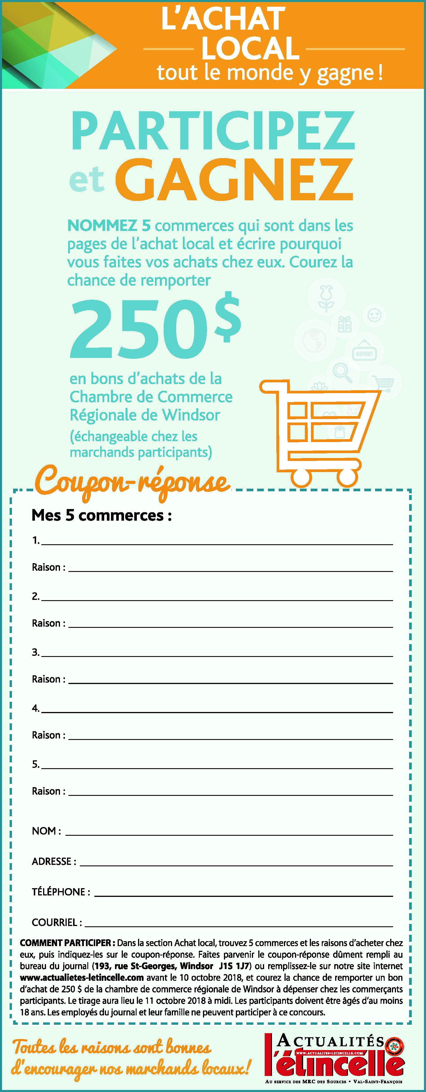 Gagnez 250$ en bons d'achats de la Chambre de Commerce régionale de Windsor (échangeable chez les commerçants participants)