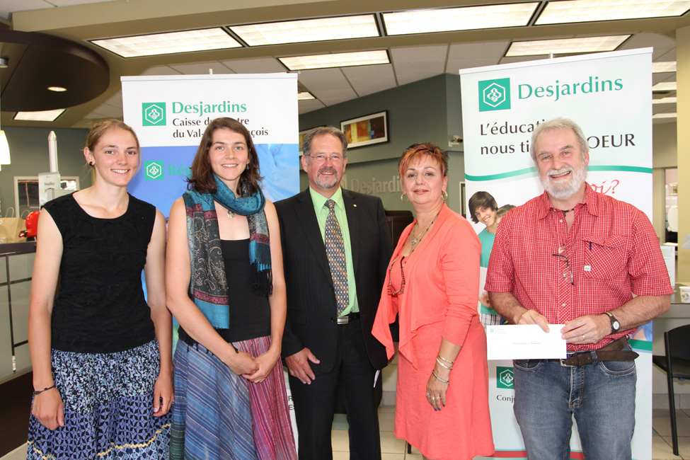Desjardins 33 833 $ en aide aux organisme - Caisse DesjardinsAide remise à M. Adam Rousseau, Comité de la St-Jean, en compagnie de M. J-M Richer dir. de la caisse et Mme Manon Morin prés. du CA